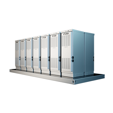 The PowerBase is a robust energy storage system on a steel frame with the footprint of a standard ISO 20-foot container. It comes pre-wired and pre-configured to reduce installation cost and delivery time, and can hold up to 12 Pixii PowerShaper2 cabinets, with a maximum power capacity of 580kW.